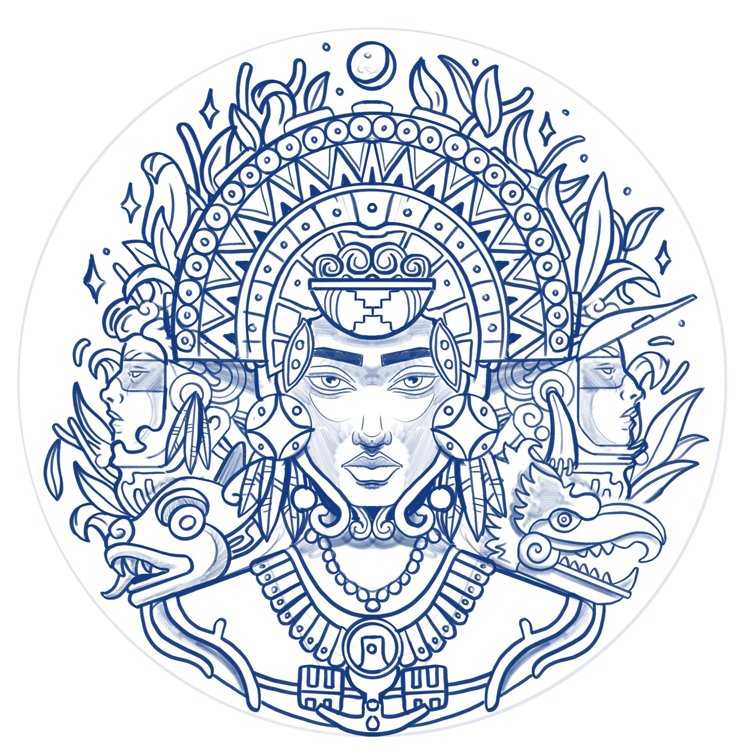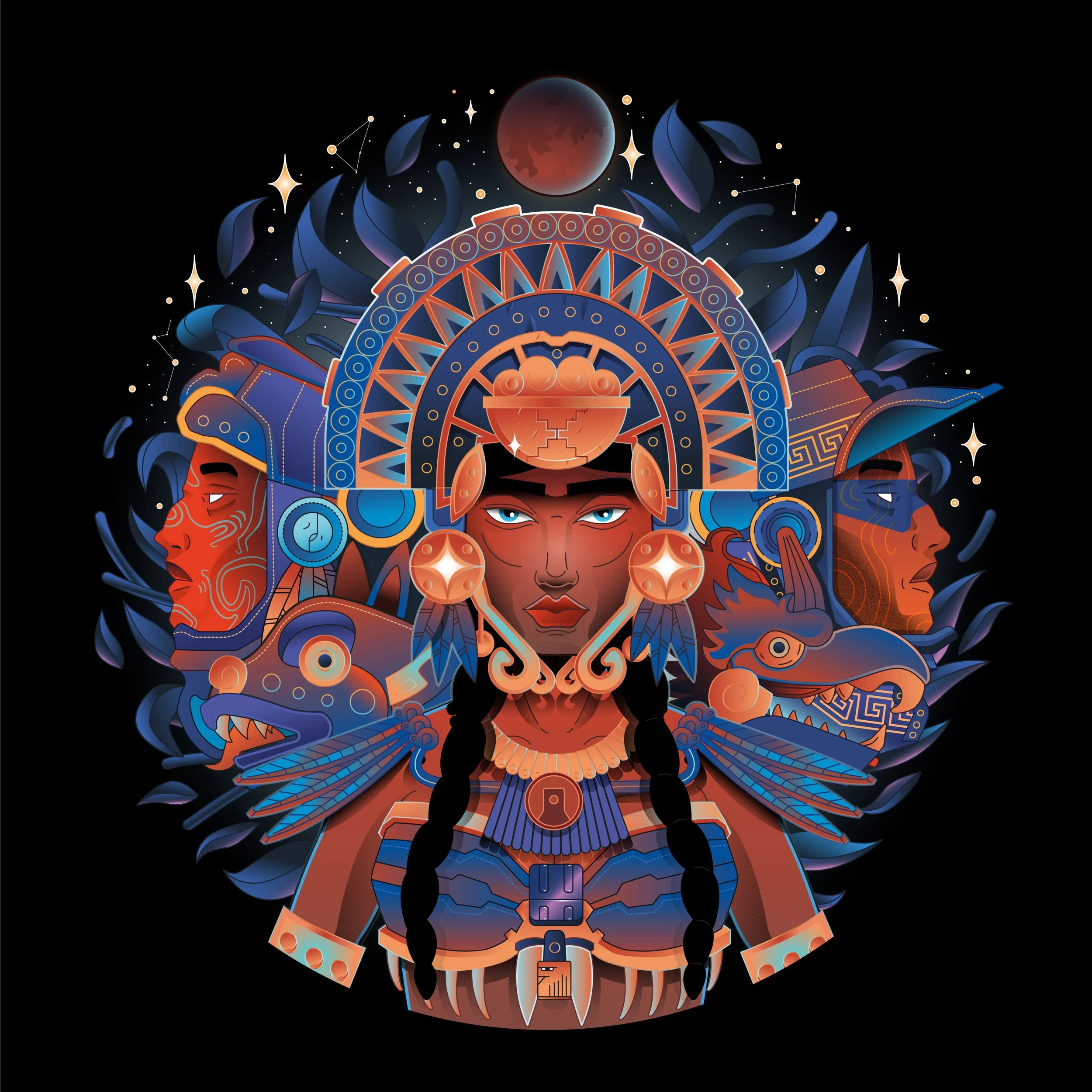 I designed an illustration for a special group trip to Tulum. The illustration was used for the inspiration guide and as the visual icon for the entire journey. The starting point was to create a central character that reflects Central American indigenous culture, combined with various elements representing both the trip and the group itself.